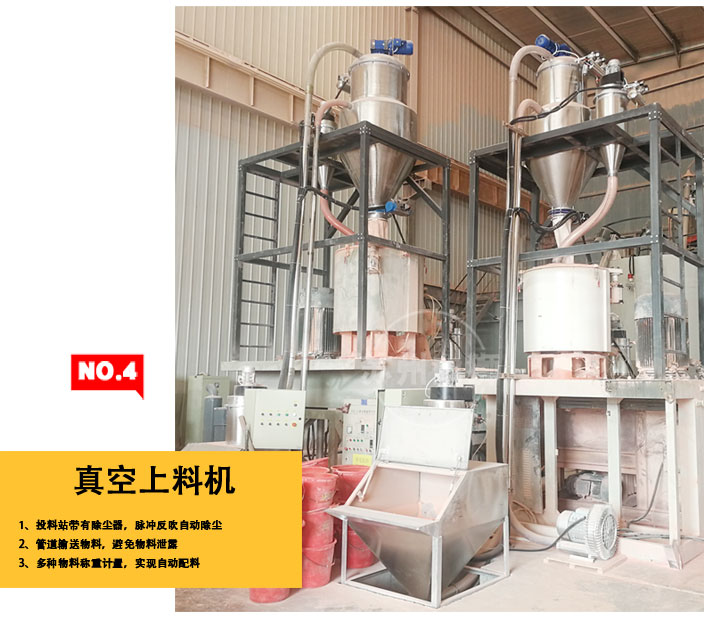 我公司設計了電腦自動控制稱重、配料、輸送的系統解決方案。本方案的基本流程為:自動 稱重,稱重完畢的物料投入混合機組,輔以氣力管道輸送至擠出機。與傳統的方法相比這種方案的優點是: